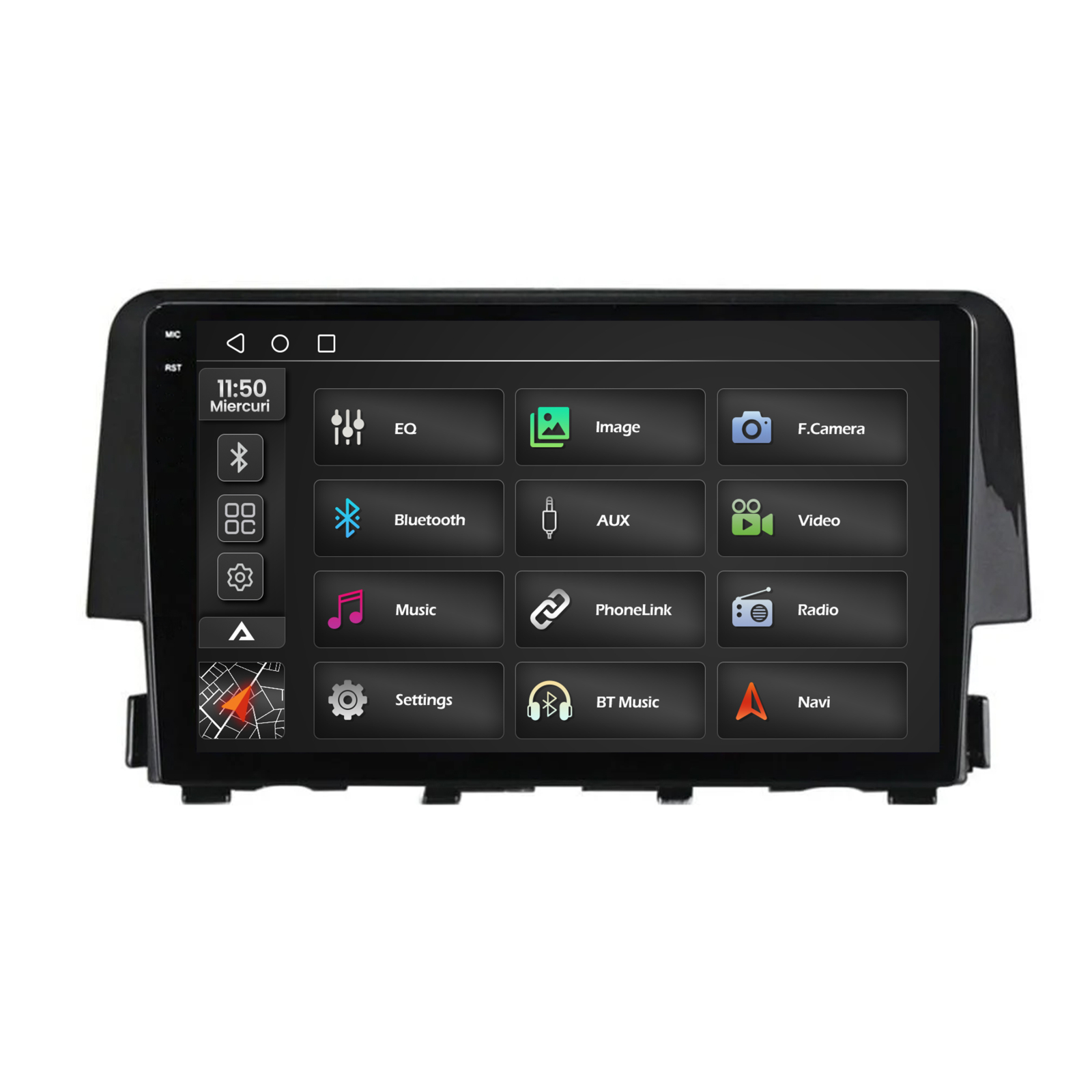 Ecranul QLED 2000×1200 (2K) oferă un nivel ridicat de claritate, contrast și detalii superioare față de rezoluțiile HD standard. Navigația, camerele video și interfața Android sunt afișate mai precis și mai natural.