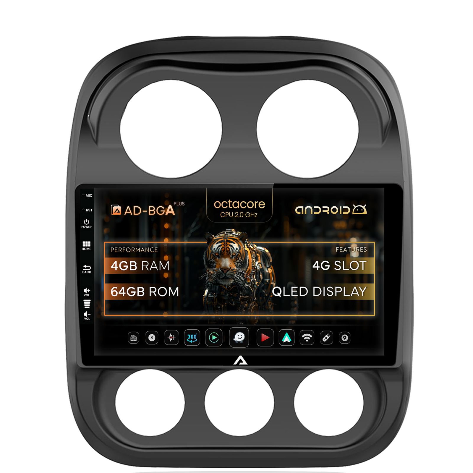 Navigatie Jeep Compass (2009-2016), Android, A-Octacore / 4GB RAM + 64GB ROM, 10.1 Inch - AD-BGA10004+AD-BGRKIT284