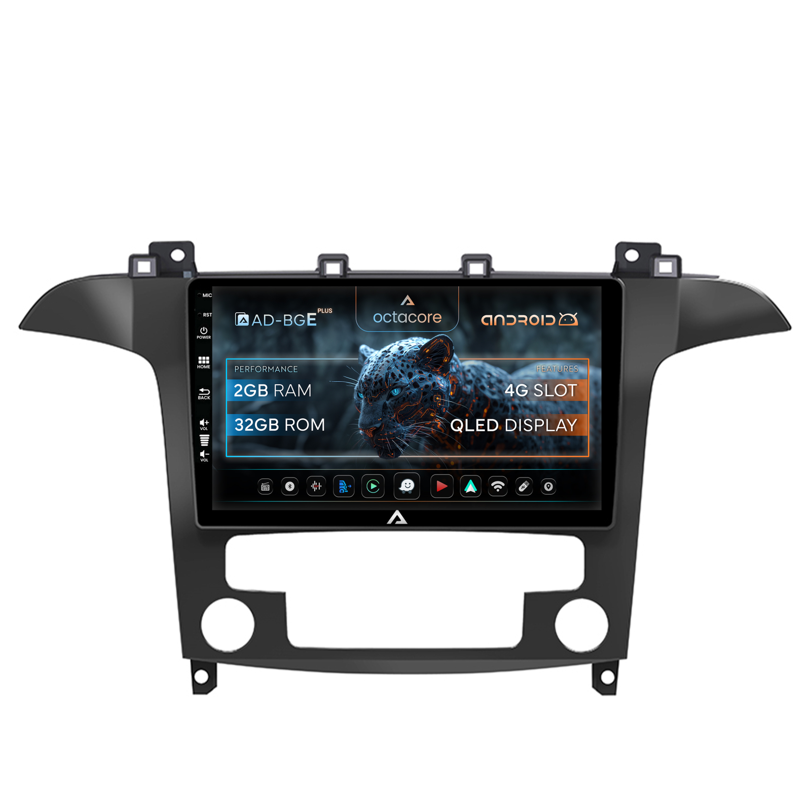 Navigație Android Dedicată pentru Ford S-Max / Galaxy cu 2GB RAM și 32GB ROM din seria AD-BGE. Carplay și Android Auto, GPS, Internet, Bluetooth, USB, AUX și multe altele.