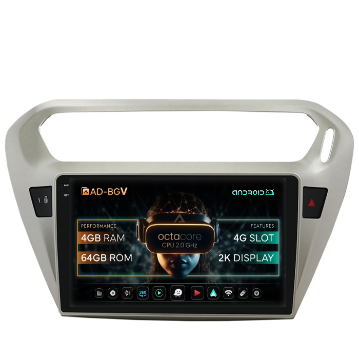 AD-BGV Navigatie Peugeot 301 / Citroen C-Elysee, Android , V-Octacore / 4GB RAM + 64GB ROM, 9.5 Inch - AD-BGV9004+AD-BGRKIT255 + CADOU