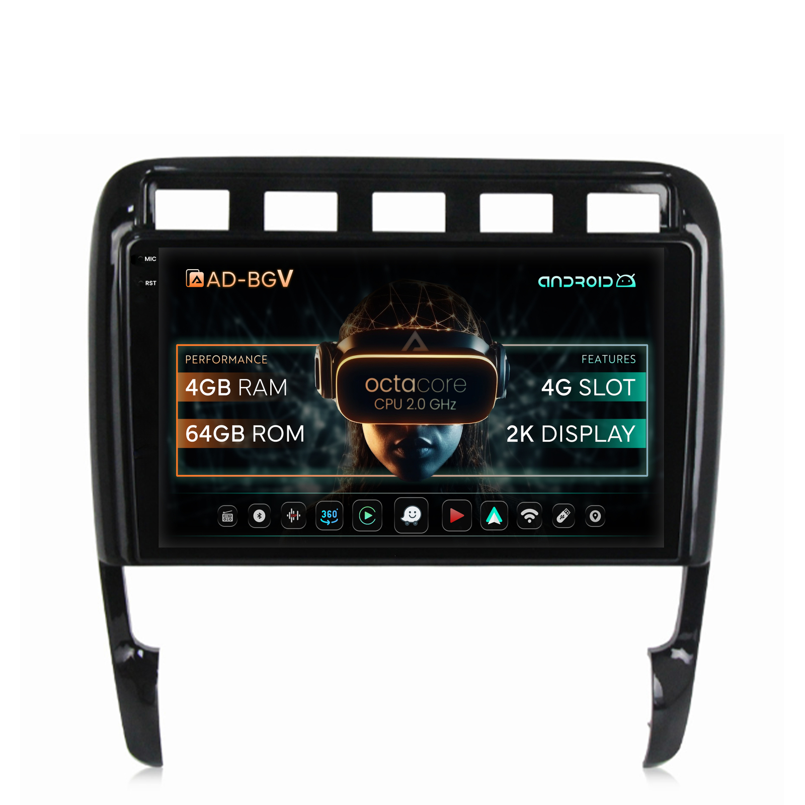 AD-BGV 2K PLUS rulează pe procesor Octa-Core 2.0 GHz, cu 4GB RAM DDR4 și 64GB stocare internă. O configurație echilibrată pentru navigație, aplicații multimedia, streaming și utilizare zilnică fluidă.
