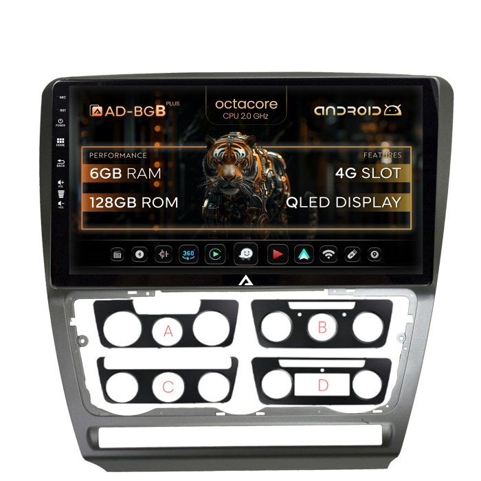 Acest model multimedia Android pentru Skoda Octavia 2 (de la anul 2005 începând) permite integrarea unui display de 10.1 inch în bordul original al vehiculului.