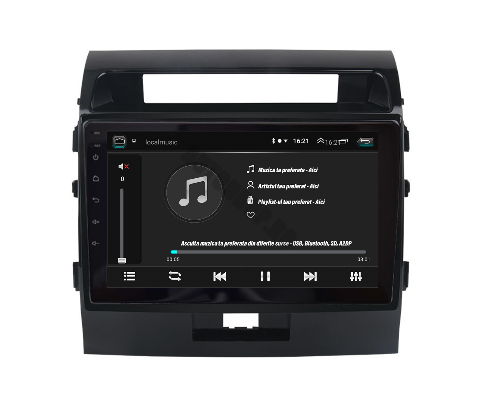 Funcție RDS ce permite afișajul în timp real al frecvenței Radio și denumirea acestuia. Odată salvate posturile principale, aplicația radio o să le recunoască automat după denumirea lor.