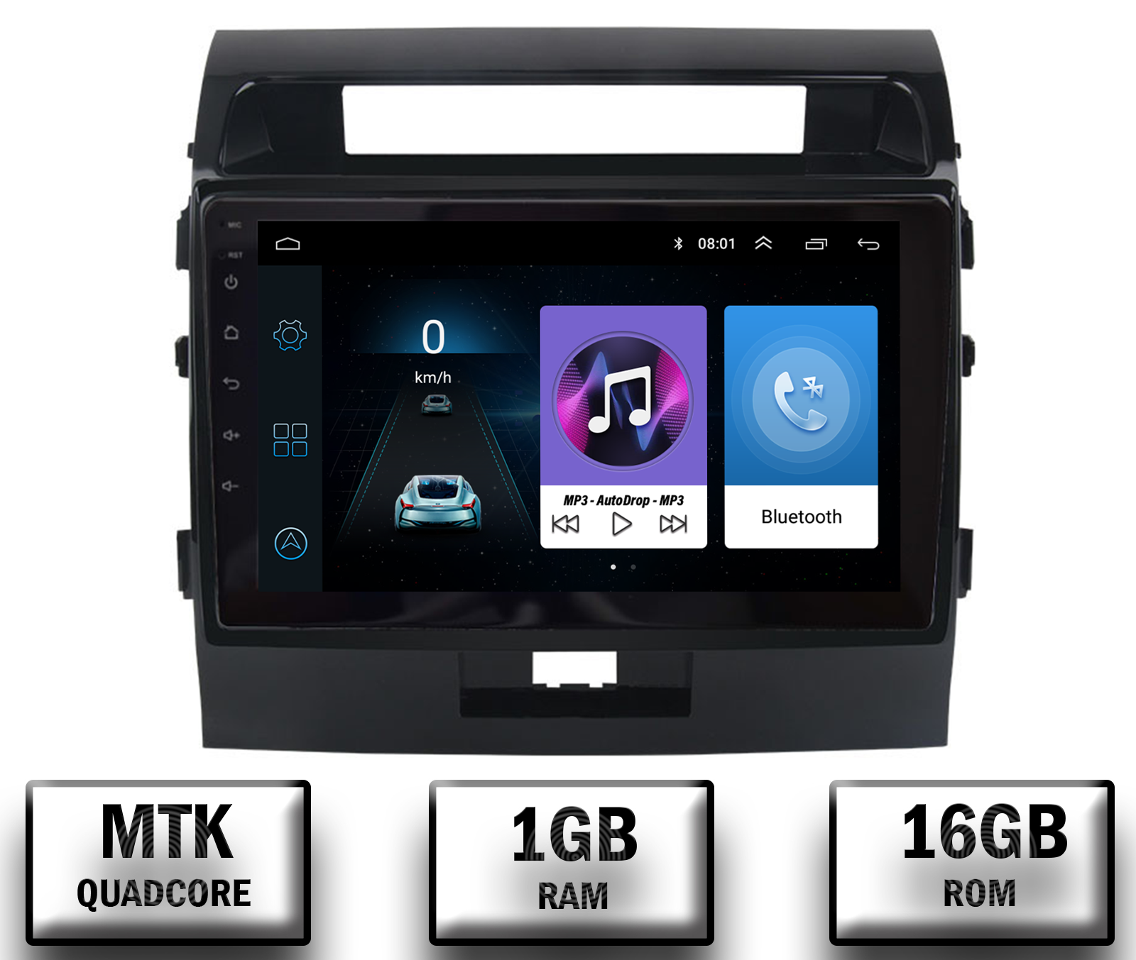 Navigatie Toyota Land Cruiser 200 (2007-2015), Android 10, P-Quadcore / 1GB RAM + 16GB ROM, 9 Inch - AD-BGP9001+AD-BGRKIT075
