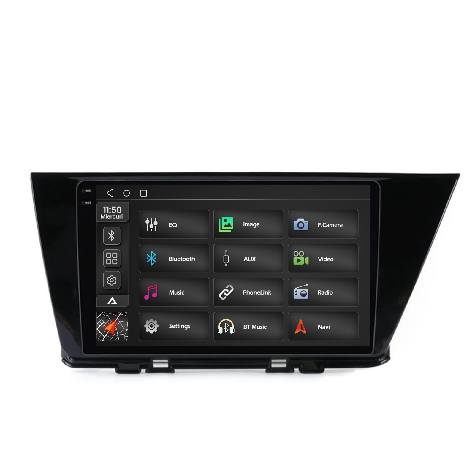 Ecranul QLED 2000×1200 (2K) oferă un nivel ridicat de claritate, contrast și detalii superioare față de rezoluțiile HD standard. Navigația, camerele video și interfața Android sunt afișate mai precis și mai natural.