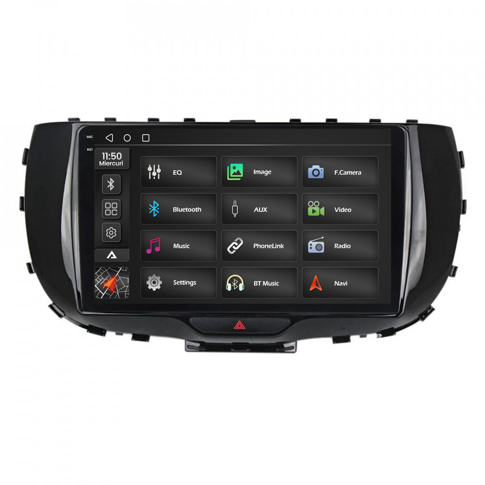 Ecranul QLED 2000×1200 (2K) oferă un nivel ridicat de claritate, contrast și detalii superioare față de rezoluțiile HD standard. Navigația, camerele video și interfața Android sunt afișate mai precis și mai natural.
